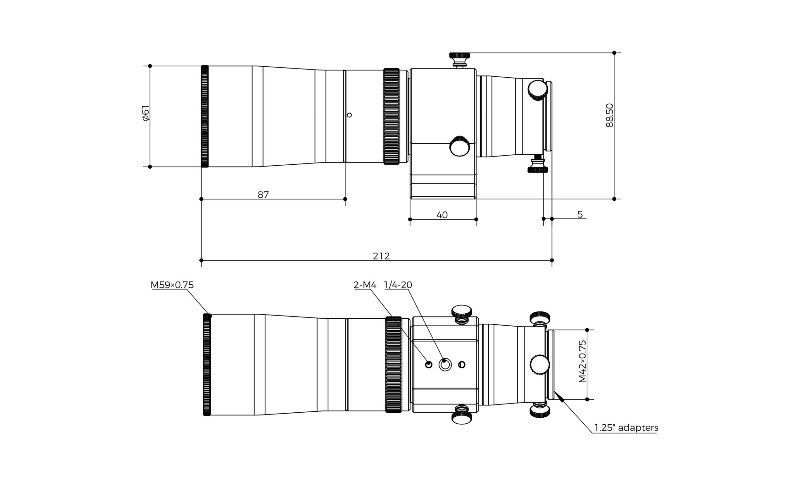 • Compatible con cámaras guía mediante adaptadores 1.25” y rosca M42