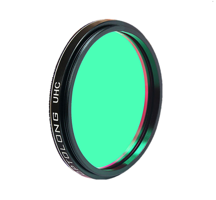 Este filtro UHC, o Ultra High Contrast, de Optolong proporciona un poco más de contraste que el filtro CLS, pero funciona de la misma manera. Al reducir los efectos de la contaminación lumínica causada por fuentes artificiales y naturales, el cielo de fondo se vuelve más oscuro, aumentando la visibilidad de sus objetos favoritos de cielo profundo. Skyglow, que es causado por el oxígeno neutro en la atmósfera, así como la luz de las luces de vapor de sodio de alta y baja presión y las lámparas de vapor de mercurio se suprimen significativamente, lo que significa que puede ver o tomar imágenes de áreas de fuerte contaminación lumínica.