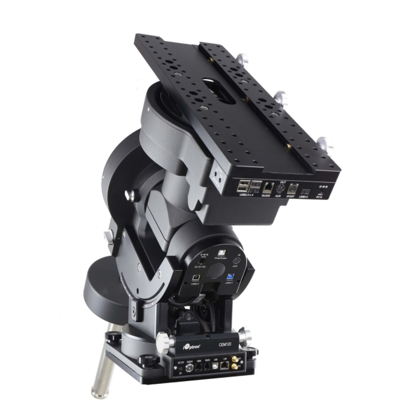 El rendimiento del CEM120 se demuestra por su bajo error de seguimiento periódico de ±3,5 segundos de arco. Junto con el aspecto de estabilidad, el CEM120 cuenta con un sistema avanzado de administración de cables que consta de más puertos en más ubicaciones para evitar enredos y reducir la posibilidad de rotura de cables. También agrega algunas características nuevas a la familia CEM, como Wi-Fi y LAN para operación remota y embragues confiables y fáciles de usar en ambos ejes.