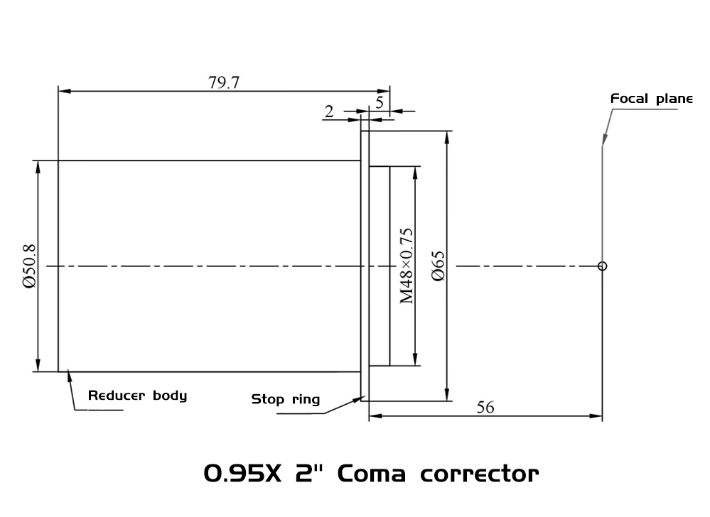 El corrector de 2 pulgadas está diseñado para la corrección del círculo de imagen APS – C (28 mm de diámetro), adecuado para la mayoría de los OTAS de relaciones focales F3-F6 vendidos,