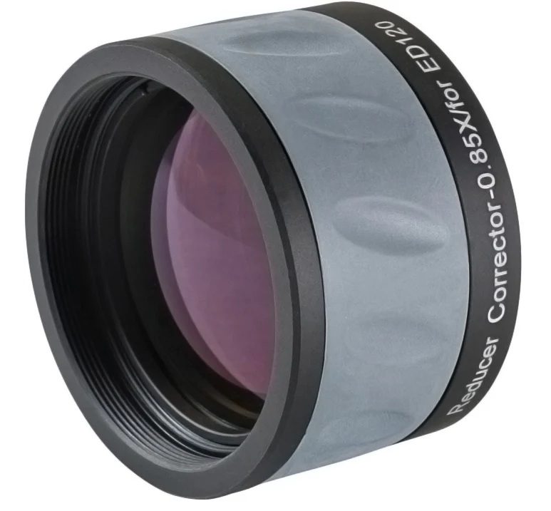 Este Aplanador – Reductor 0.85x (para reducir la distancia focal) es un accesorio óptico reducir la focal. Por lo tanto, los tiempos de exposición necesarios son más cortos y la óptica es más luminosa. Además, el campo de visión aumenta, lo que permite observar o fotografiar objetos astronómicos aún mayores.