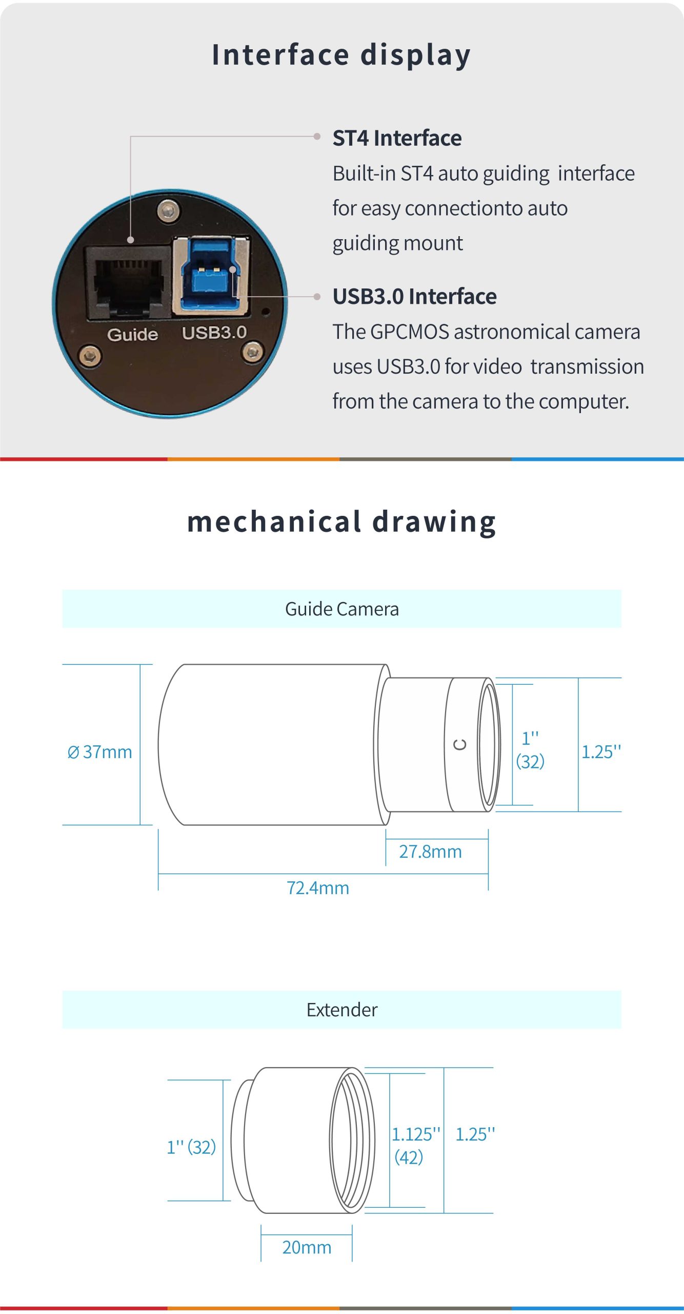 El IMX662C está equipado con conectividad USB 3.0, así como con una interfaz de autoguiado tradicional ST-4.